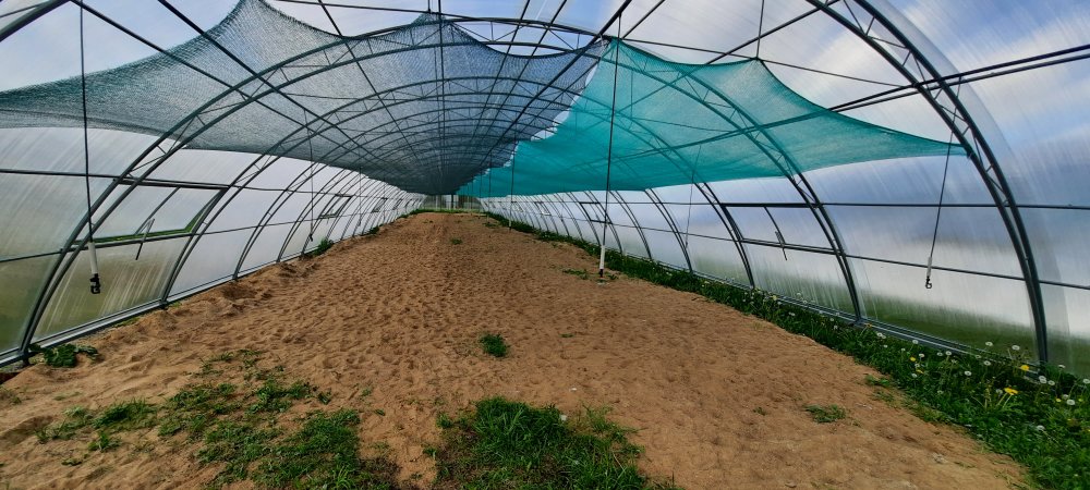 Для решения данных задач установлена система микродождевания теплиц с ручным управлением. Полив укомплектован микроспринклерами GreenSpin и Hadar израильского производства и насосной станцией для подачи воды. Система включает по три линии микроразбрызгивателей в каждой теплице д.25 и магистральный трубопровод д.40. В комплект микродождевателя входят: дождеватель, антикапельник (LPD), удлинительная трубка, вставки в трубу и утяжелитель. Для очистки воды из емкости установлен дисковый фильтр.